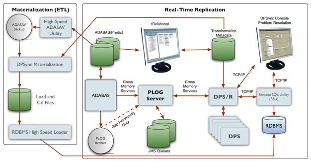 DPSync provides all of the tools for analyzing ADABAS data, defining the RDBMS, defining the transformation process, generating the metadata for transformation, extracting, transforming, and loading the RDBMS tables, and transforming and applying the updates in real-time mode.